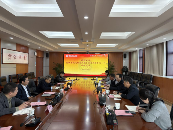 座谈会上,徐和生详细介绍了安徽省现代服务业联合会近年来重点推进的康养产业、现代物流与供应链建设和“皖美”消费工程等情况,并介绍了现代服务业研究院及产业联盟的最新布局。他表示,希望联合会与徽商职业学院在现代物流与供应链、冷链物流产业联盟等方向持续深化合作,共同打造高水平服务业发展平台,服务全省产业升级和新质生产力发展。徐建农和周保昌在交流中表示,徽商职业学院在服务业领域具有良好的专业基础和研究优势,期待与学校在产业联盟共建和课题研究等方面加强合作,共同推进安徽省服务业新质生产力发展。