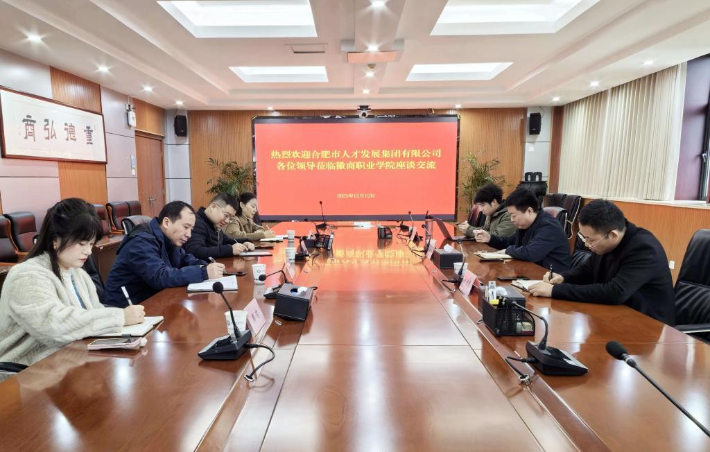 2025年12月12日,合肥城市教育投资发展有限公司总经理赵洪峰、副总经理昂金虎、合肥市人才发展集团投资部部长潘登一行莅临学校,与发展规划处、招生就业办公室、信息工程学院、汽车与智能制造学院,围绕“共建平台、共育人才、共享资源、共促发展”主题开展座谈交流,并就多项合作事项达成初步意向。会议由发展规划处主要负责人主持。